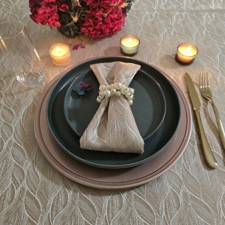 R550,00 – R1030,00Price range: R550,00 through R1030,00Tablecloth Two Tone Small Leaf Duck Egg & Gold